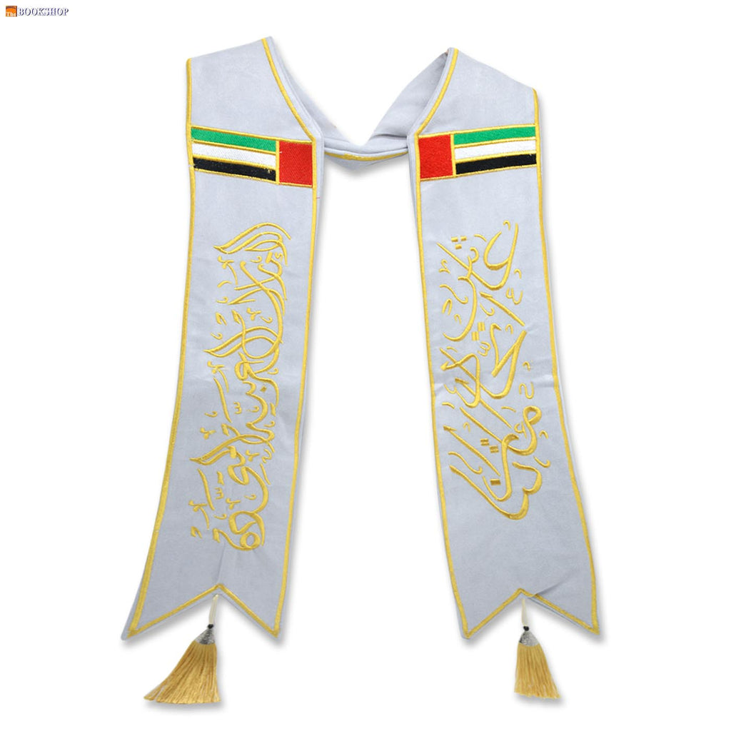 ADULT VIP COLLAR SCARF VELVET GRAY W/ BOTH SIDE FLAG AND ARABIC TEXT