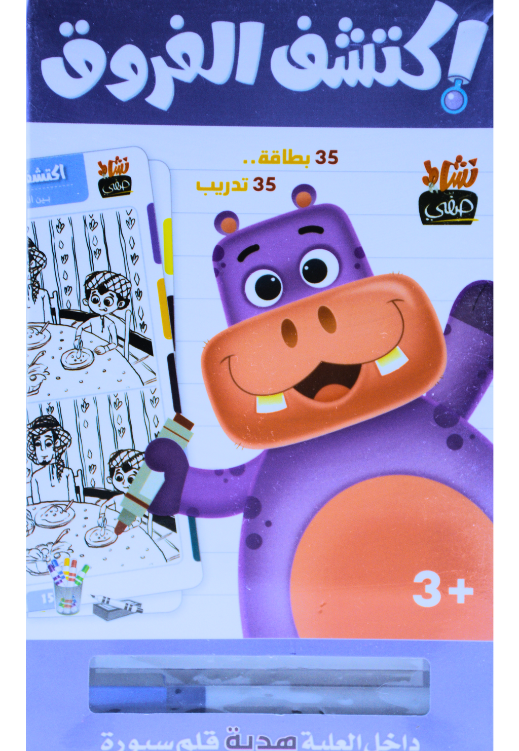35 بطاقة.. فيها 35 تدريبتساعد الأطفال على تنمية قوة الملاحظة والتركيز .. من خلال التركيز في اكتشاف الفروق بين الصورتين.قسّمنا البطاقات إلى ثلاثة مستويات.. 3 فروق؛ 5 فروق؛ 7 فروق.