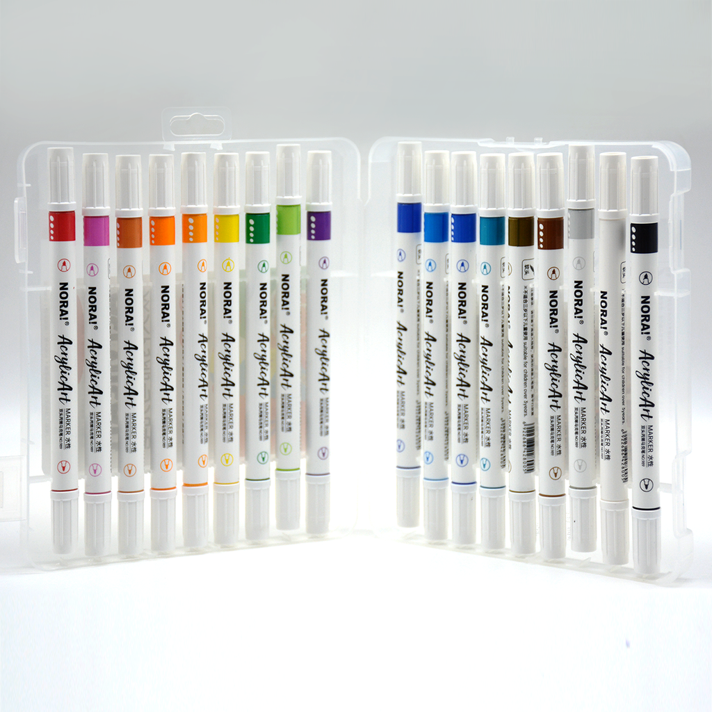 NORA DOUBLE ENDED ACRYYLIC MARKER 18COLORS IN PLASTIC BOX