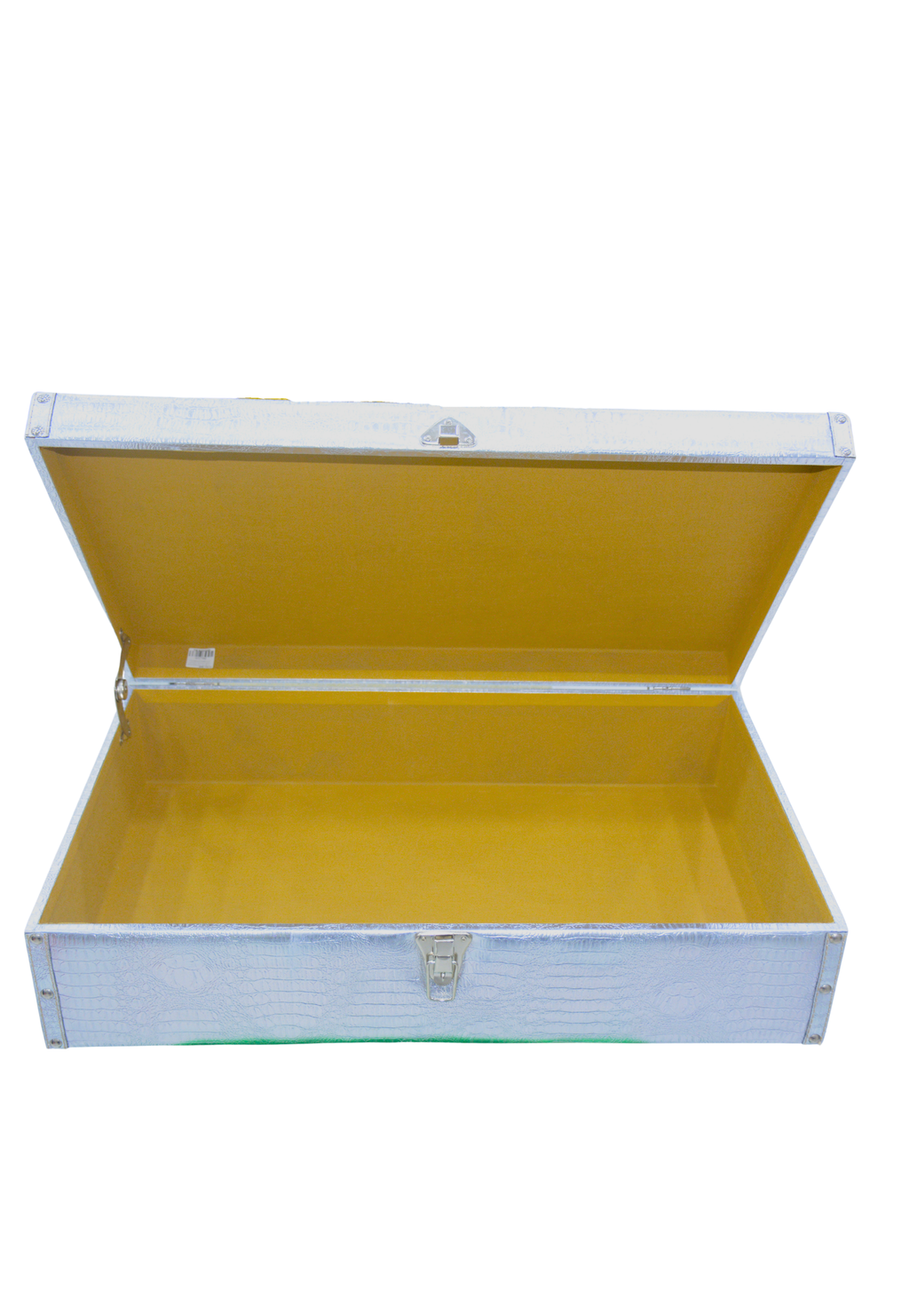 WOODEN LEATHER FLAT GIFT BOX W/CROC BODY DESIGN&LOCK 70X42X18CM SILVER-3